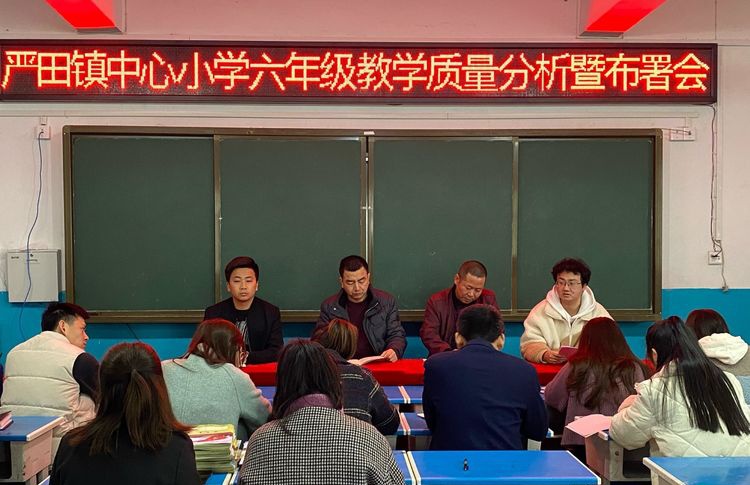 教育质量是学校生存之本。在全县教育教学质量提升年的大背景下,“质量立校”是学校生存的根本,是学校发展的基石。“质量立校”要落地,不能只停留在口头上,要有实际行动。因此,3月4日下午,严田中心小学组织召开了2021年六年级教学质量分析会暨布署会。会议由赵亚峰副校长主持,左锋勇校长、郁文生副校长、教务处主任鞠礼卿及六年级全体教师参加。