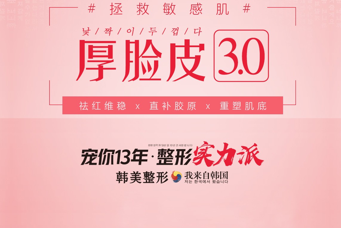 敏感肌宝宝们易出现春敏现状,大多是由于肌肤屏障出现问题。解决肌肤屏障问题,南昌韩美美容医院皮肤科周辉主任建议您可以选择南昌韩美美容医院的厚脸皮3.0疗法,它就是针对敏感肌肤进行肌感、肌底、肌质三层修复,拯救肌肤干燥、瘙痒、泛红等现状,进而全面构建肌肤屏障,可以有效避免春敏症状。