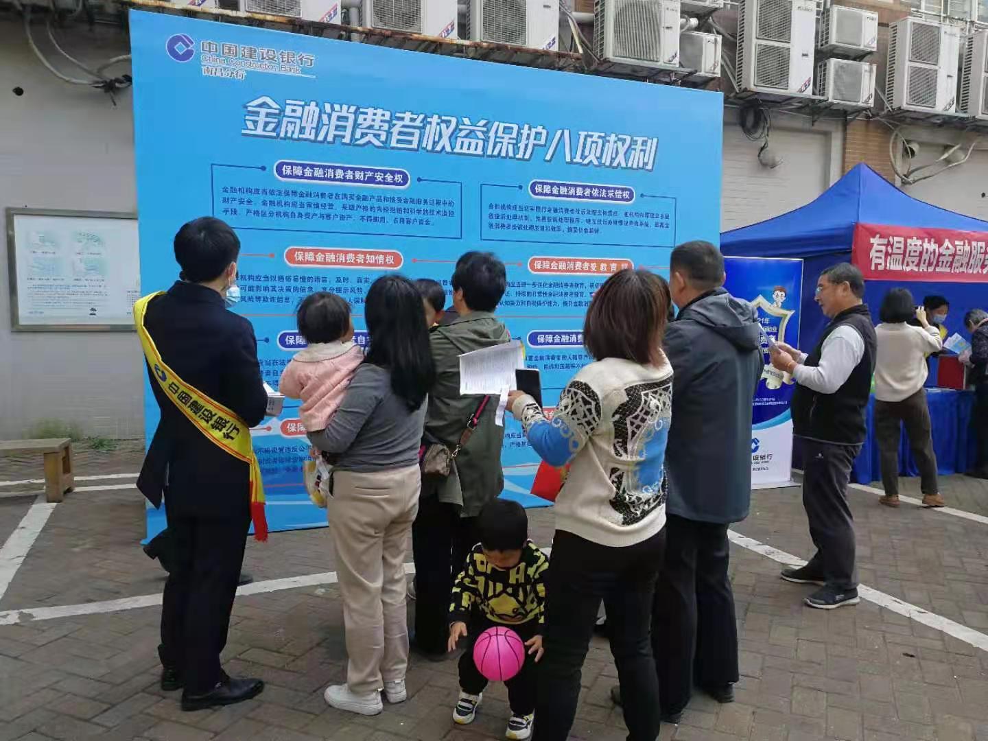 本次宣传活动深入居民区,充分融入到民众日常生活,极大地增强了金融消费者的获得感,民众纷纷称赞;建设银行的服务是“有温度的服务”,建设银行是人民群众资金安全的“护航人”。