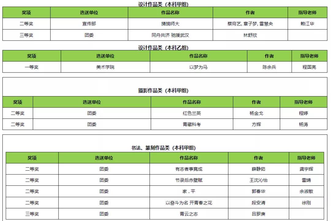 具体获奖情况:
