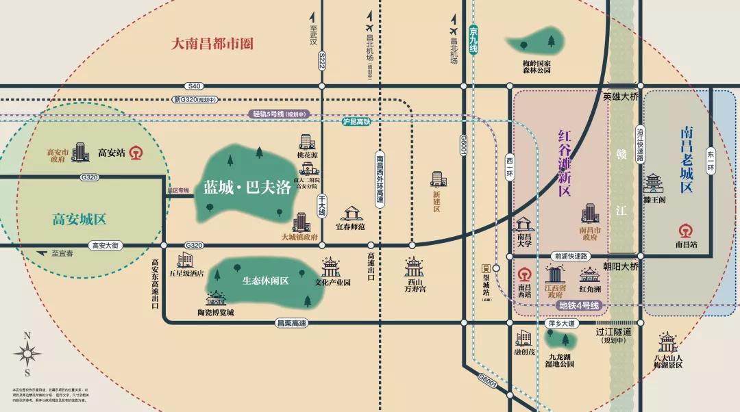除了《十四五规划》之外,交通上,高安有横穿东西的320国道,穿境而过的沪昆高铁、昌栗高速,还有规划中的轻轨5号线和南昌西二环,以及将于2021年开建的高安通用机场、规划确定将于2022年开工的S218省道。这意味着,未来几乎整个高安板块,都能快速联通南昌环线路网,直达各区域中心。