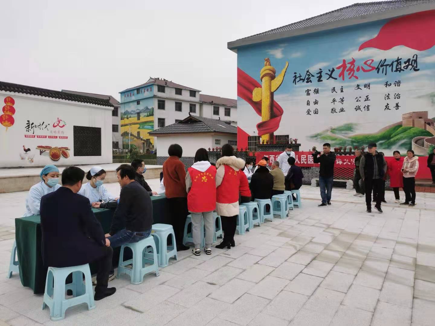 党员发展对象李灵说:建党百年之际,参加这个活动,让我们在为病人服务的过程中,用行动重新体会到党的宗旨,感觉非常有意义。第一党支部书记王青接着说:我所在支部共来了6、7名党员医生,大家发自内心愿为村民义务服务,实现“一切为了病人”的办院宗旨。“没想到,村民对健康顾问义诊方式这么认可,我们一定要尽心尽力,积极投入美丽乡村建设,将优质医疗服务送到农民家门口儿。”参加义诊的医生护士纷纷表示。