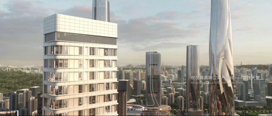180m塔尖住区连续景观,直面“深圳露台”,对望摩天地标塔楼;