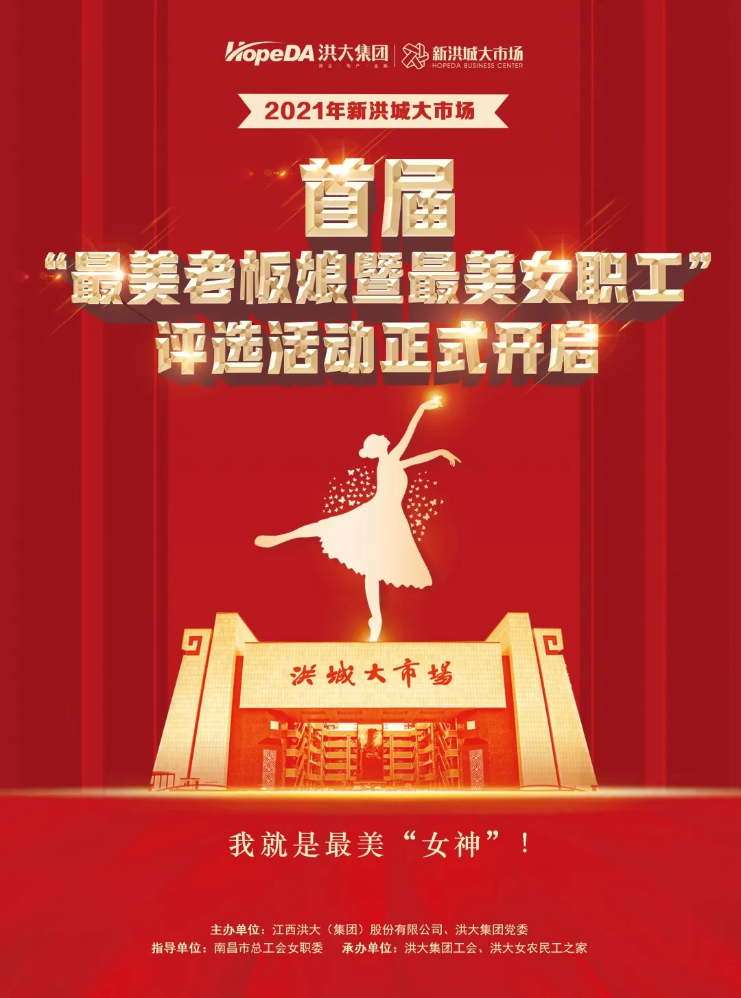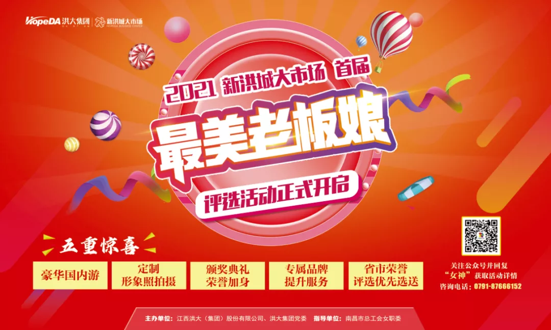 这是新洪城大市场首届最美老板娘(女职工)评选活动,主题为“巾帼之花 美丽绽放”,由洪大集团公司、洪大集团党委主办,洪大集团工会、洪大女农民工之家承办,省妇联和南昌市总工会女职委全程指导。每个人心中都有自己对“美”的独特理解,为此,活动打破“美”的狭隘定义,从自信风采、公益爱心美、诚信经营、形象气质、成功卓越、爱岗敬业、突出贡献、创新求学、感恩忠诚等多个维度发掘老板娘、女职工的闪光点,全方位展示新洪城大市场女性风采,同时打响市场和商户品牌。