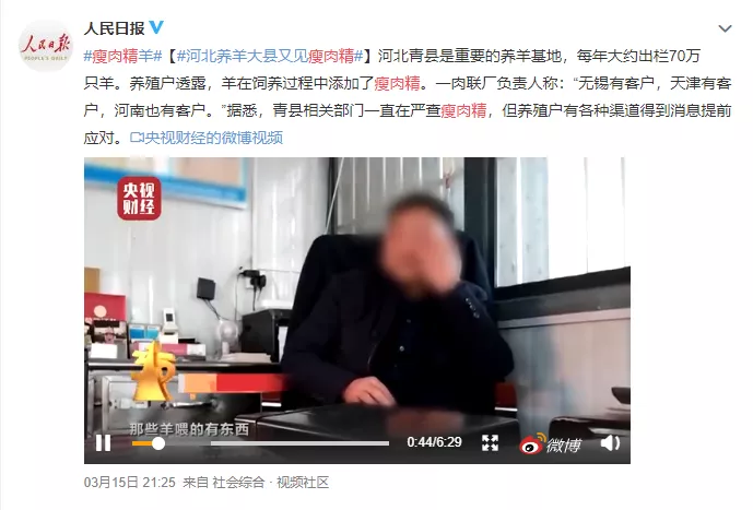 据央视3·15晚会曝光,记者暗访发现在河北省一个重要的养羊基地——青县,存在部分经销商贩售瘦肉精羊肉,且持续了十年之久。