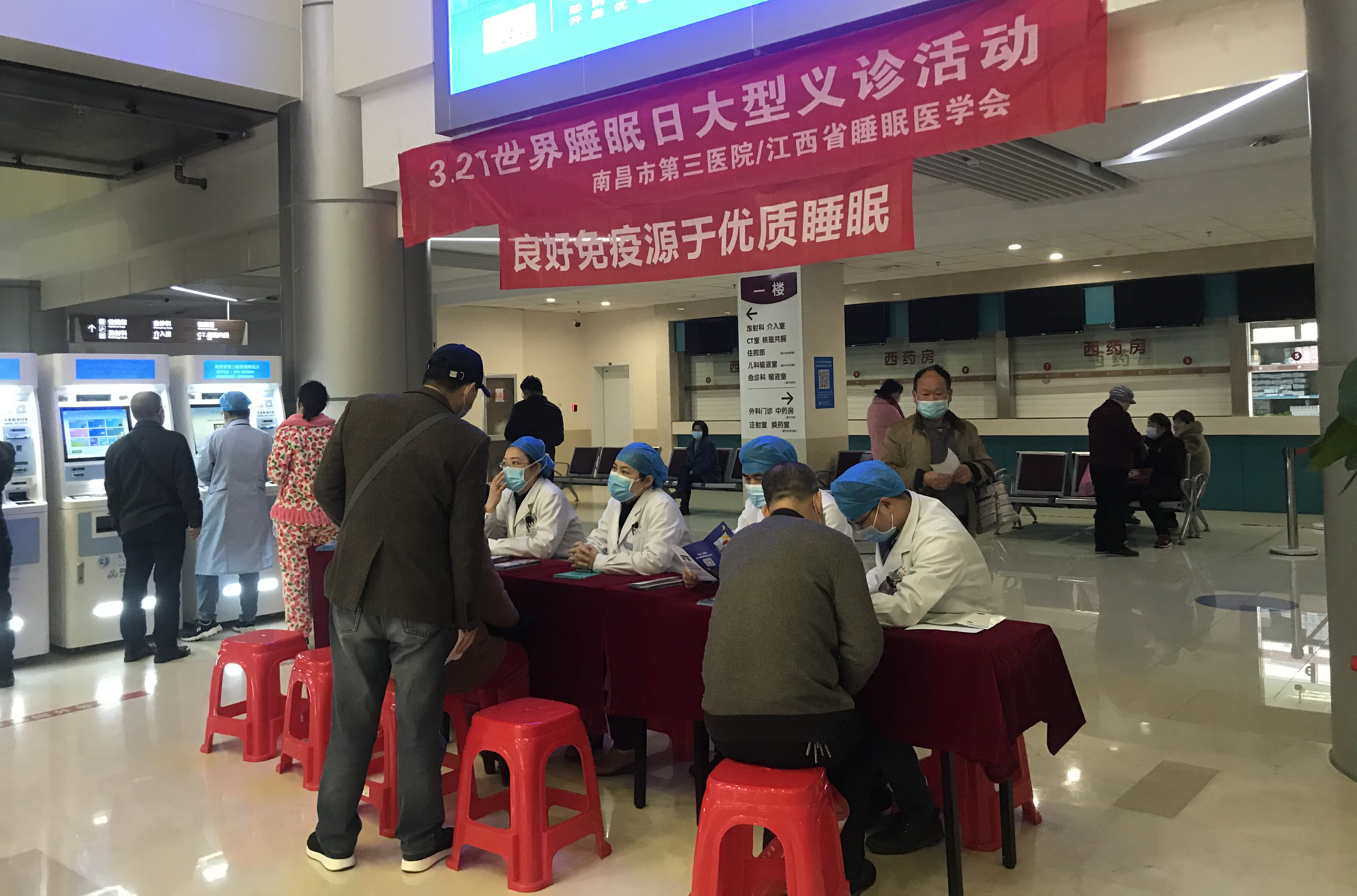 江西消费网讯(邓仰辉)报道:3月19日,在第21个世界睡眠日即将来临之际,南昌市第三医院神经内科联合呼吸与危重症医学科,在朝阳院区门诊大厅举行3.12世界睡眠日大型义诊活动。让睡眠障碍患者与专家零距离接触,切实解决睡眠障碍。