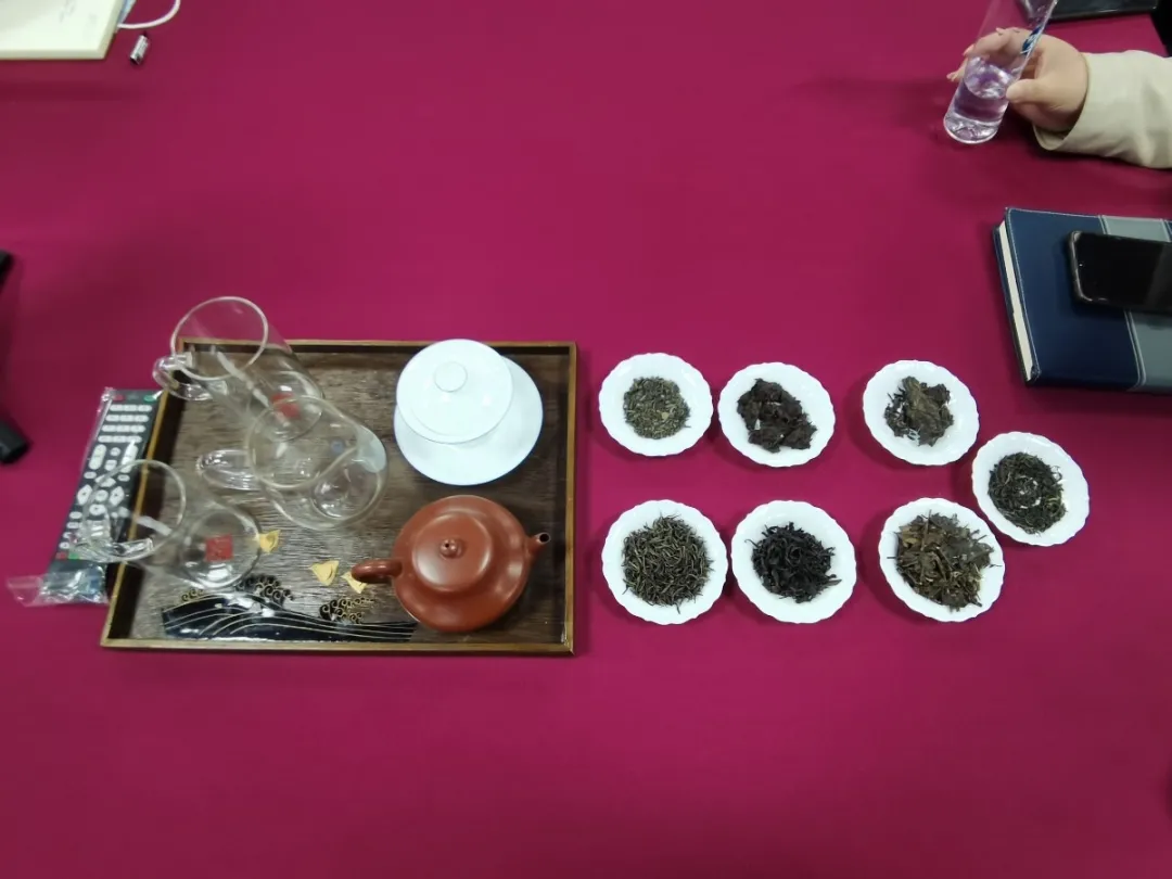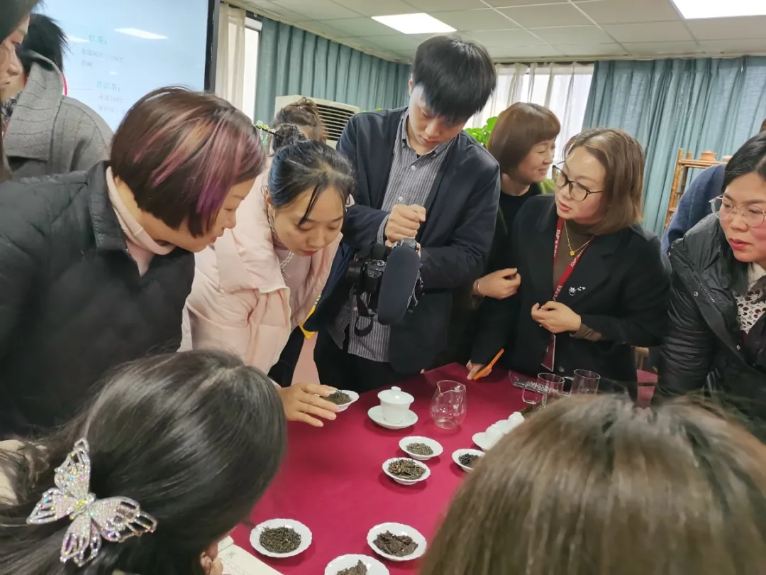 老酒知识培训结束后,由藏酒馆茶艺师程云云,为大家介绍六大茶类的基础知识、如何区分、制作工艺、冲泡温度及使用器具知识讲解。知识讲解结束后让大家现场观色、闻香分辨茶类。之后由藏酒馆茶艺师涂诗仪为大家演示不同茶类的使用器具及冲泡程序,专业的手法及优雅的姿态,让活动室内茶香四溢,现场品评,知识随着茶香一起萦绕脑海。