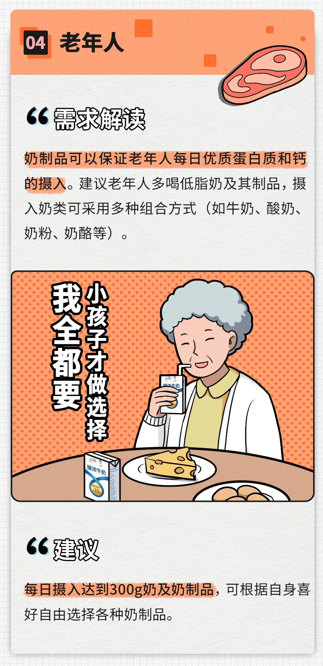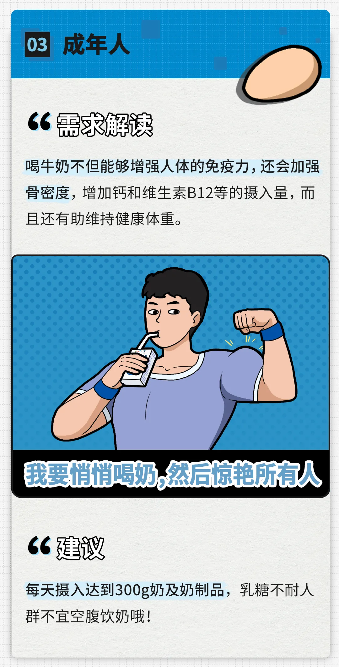 但是,市场上的奶制品品类众多,不同年龄层的人每天喝牛奶是否有不同的要求呢?