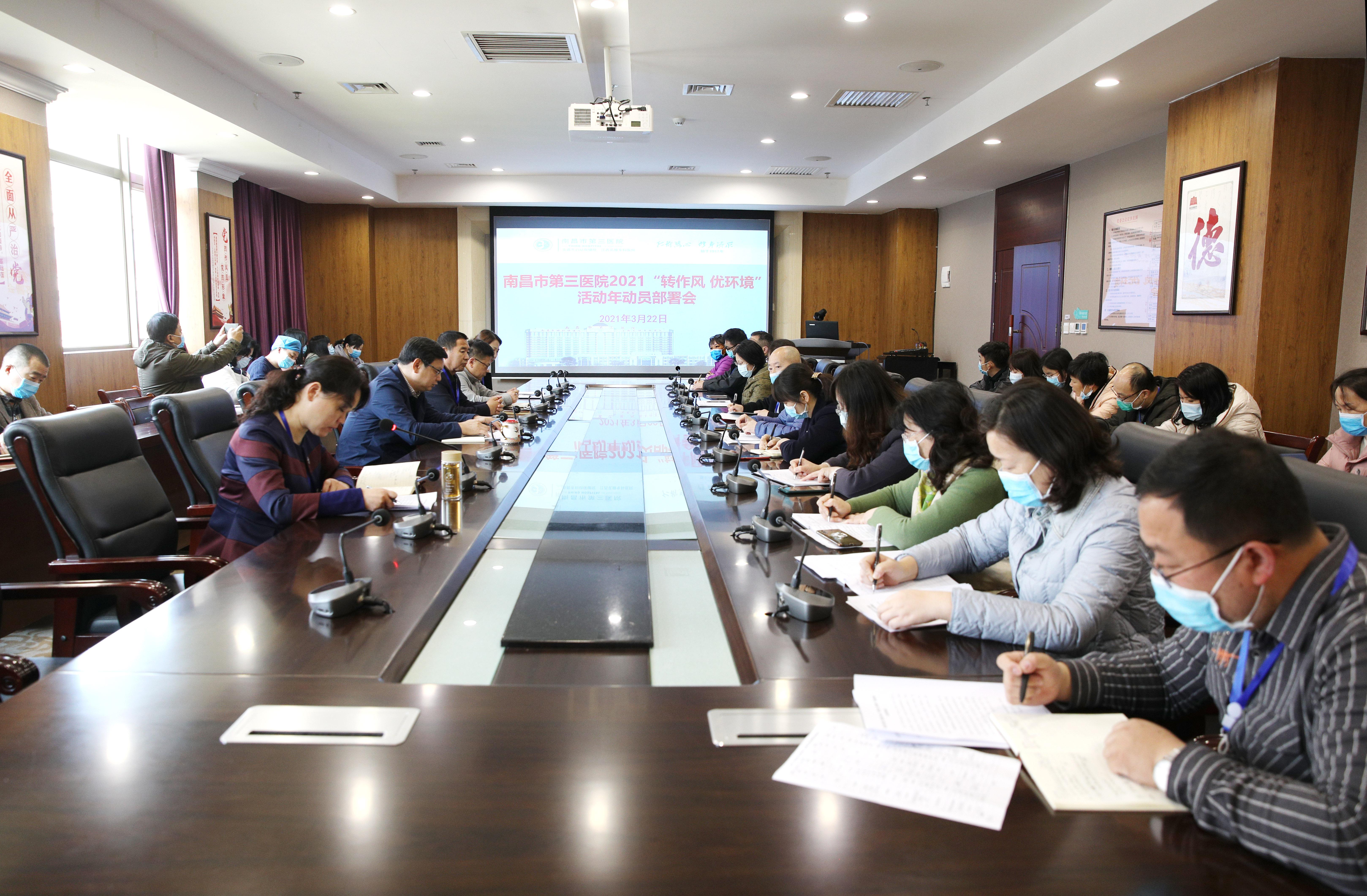 为积极贯彻落实市委、市政府和市卫健委"转作风 优环境"活动年动员大会精神,3月22日上午,南昌市第三医院在朝阳院区第二会议室召开2021"转作风 优环境"活动年动员部署会,全体班子成员、各行政职能科室负责人、党支部正副书记参加会议,院长黄科棣主持会议并讲话。