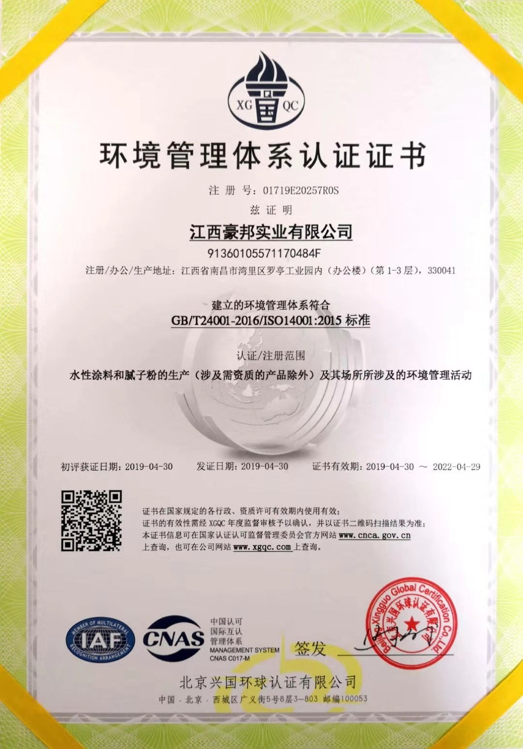 公司凭借先进的研发和创新努力已取得八项"国家实用新型专利",2016年被认定为"国家高新技术企业"并顺利通过ISO9001:2008质量管理体系认证、ISO14001::2004环境管理体系认证,先后荣获"中国环境标志产品认证"、"绿色建材产品认证"、"守合同、重信用AA级企业"等一系列荣誉,当选为"江西省涂料行业协会会长单位"和"南昌市涂料行业商会会长单位"。