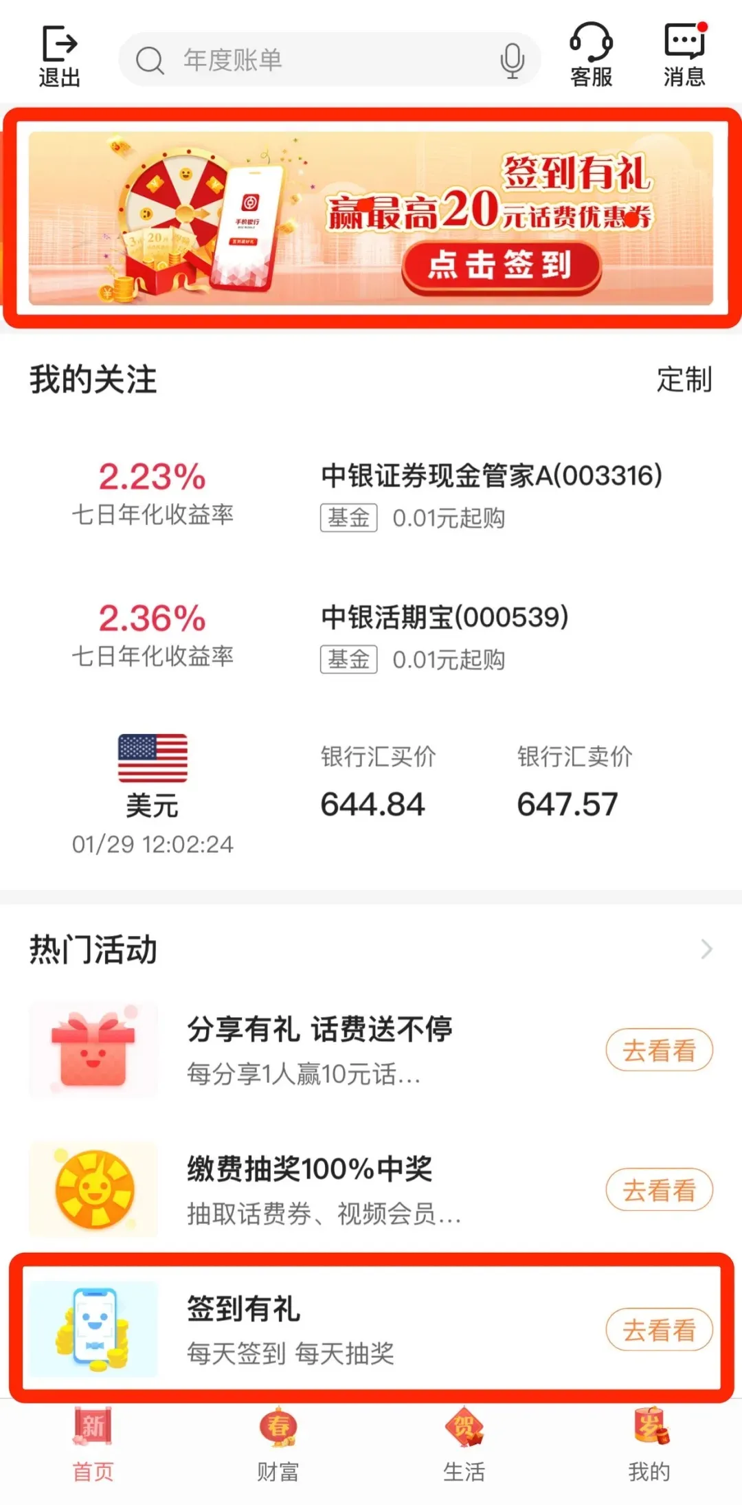 手机银行签到有礼