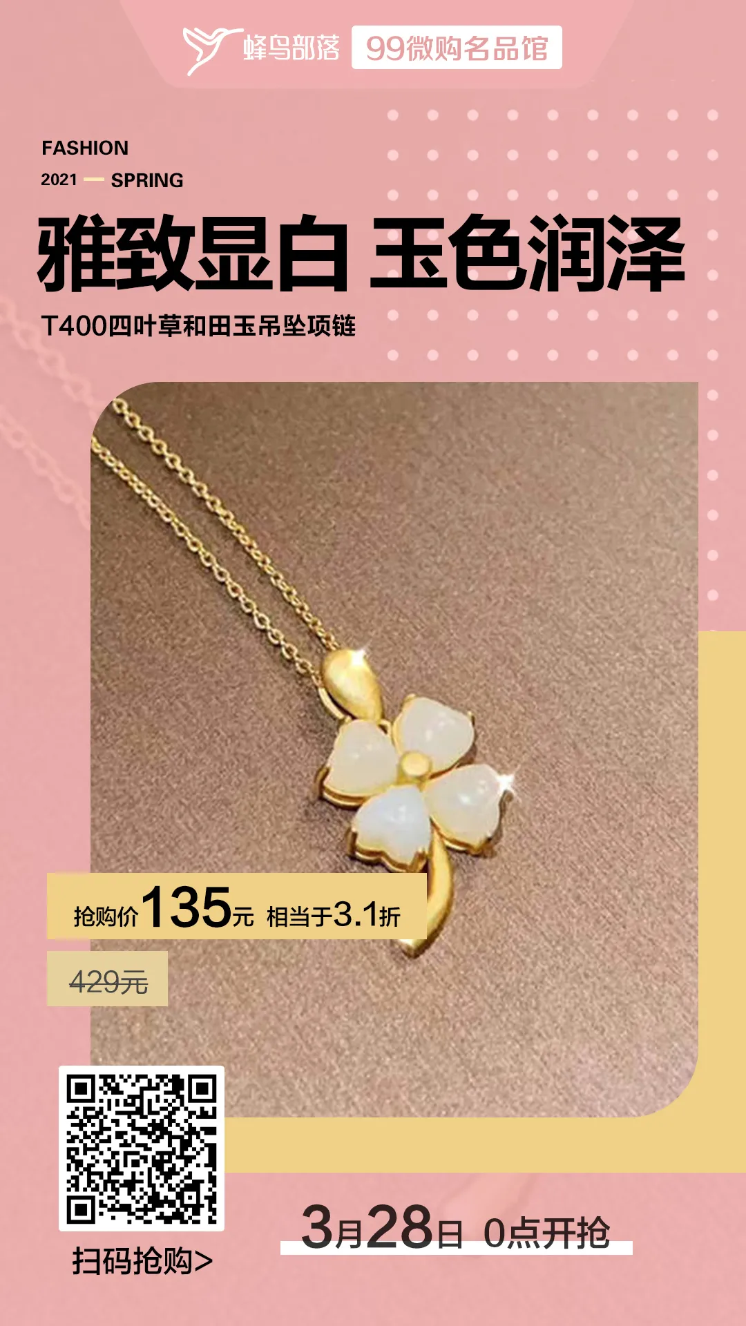T400四叶草和田玉吊坠项链