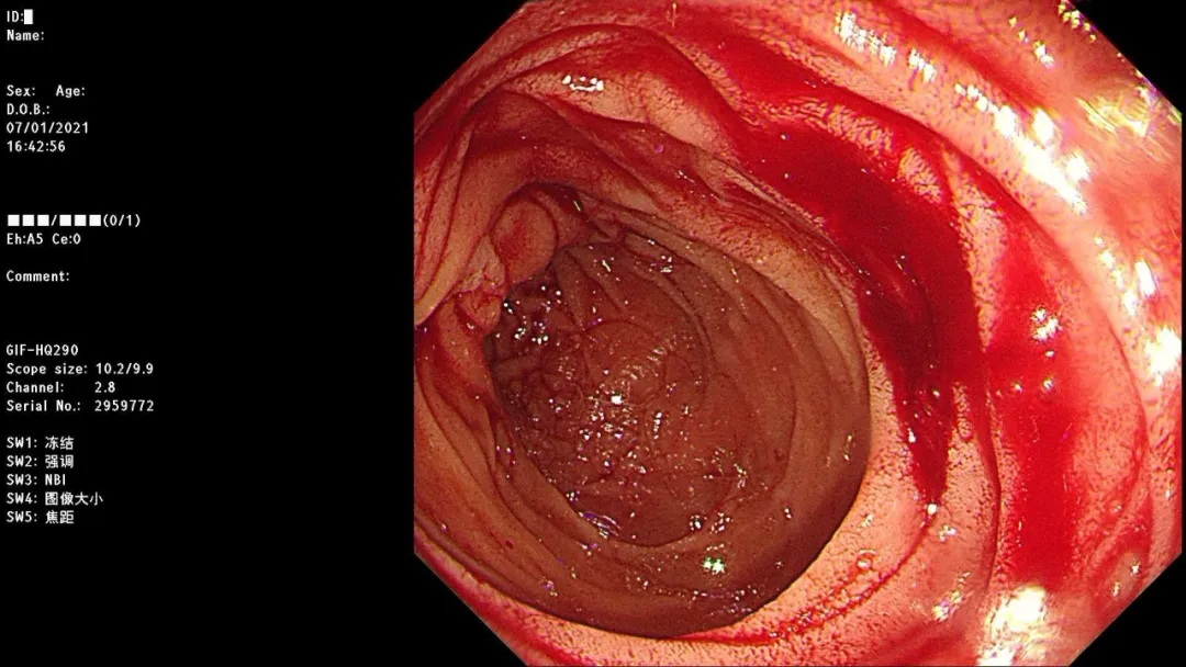 病例三:男,解暗红色血便10余天,外院胃肠镜无明显出血灶,以“消化道出血”收治住院。