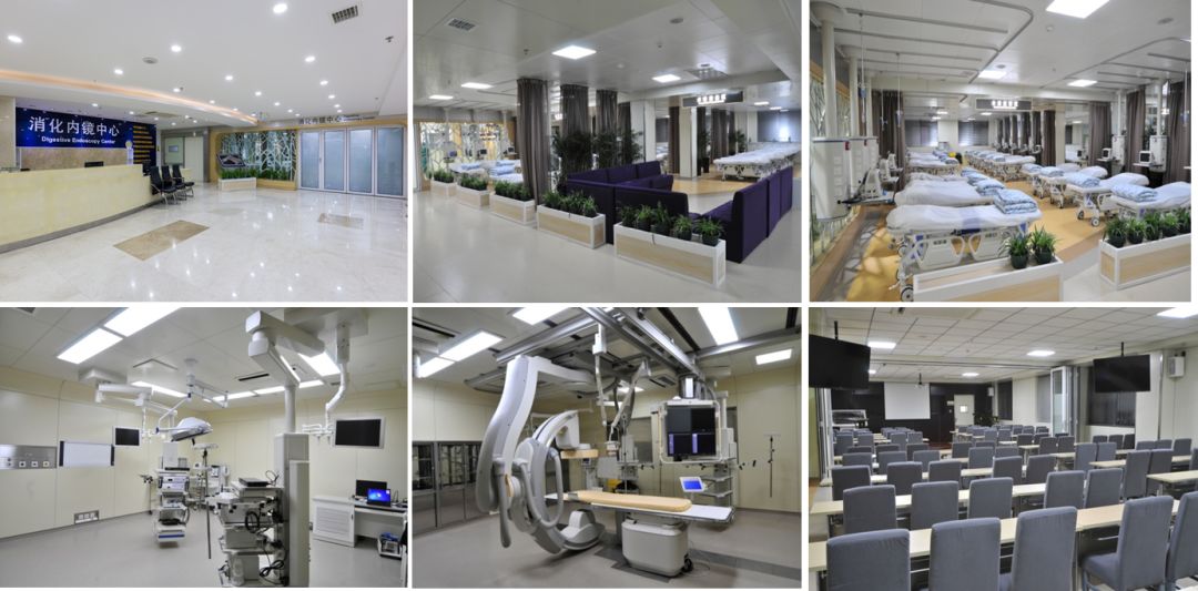 消化内镜中心:面积3500m2,拥有一流的人性化设计和服务流程。设有胃肠镜诊疗室、ERCP诊疗室、超声内镜室、共聚焦内镜室、小肠镜室、双镜联合手术室、动力检查室、麻醉苏醒室、内镜清洗室和多功能会议室等;配备有高端的电子系列内镜、大型C臂、数字胃肠机、共聚焦内镜、超声内镜、胶囊内镜等国际一流的设备。开展消化道早癌的内镜系列诊治、食管静脉曲张的硬化剂注射和套扎、消化管道狭窄的扩张及支架置入术、NOTES胰腺脓肿清创术、EUS引导下穿刺及囊肿引流术、ERCP术、ESD术、POEM手术、TIPS手术以及消化系疾病的血管介入治疗等。消化内镜诊疗病例逐年攀升,2019年逾12万例次,其中无痛胃肠镜近65%,ERCP近2800例次,消化道早癌的检出率逾22%。