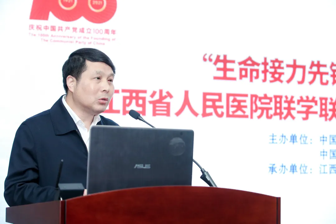 李秋根代表医院对活动的举办表示热烈祝贺,向关心和支持医院发展的各级领导表示衷心的感谢,向黄洁夫主委领衔的专家团队的到来表示热烈欢迎。李秋根指出,省医是省卫健委直属的唯一三甲综合性医院,设一院两区,有在职职工2672人,开放病床3000张。省人民医院是江西省较早开展器官移植工作和首批通过国家移植资质认证的医院,自1994年开展全省首例肾移植、2001年底开展全省首例抢救性同种异体肝移植以来,截至2020年12月31日,医院累计开展肾移植1328例、肝移植341例,无论是数量还是质量均在江西处于领先地位。肾移植患者最长存活期为25年,肝移植患者最长存活期为15年。李秋根强调,作为一家具有强烈社会责任感的公立医院,医院一直在人体器官捐献领域努力前行,坚持在党的领导下依法开展器官移植和捐献事业,牢牢把公益性写在卫生健康事业的旗帜上。