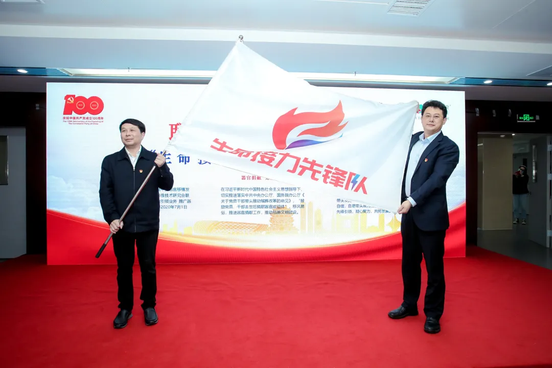 随后,活动现场举行了“生命接力先锋队”授旗仪式。中国器官移植发展基金会和中国医学影像技术研究会联合党支部书记、中国器官移植发展基金会执行理事长赵洪涛将“生命接力先锋队”队旗交到省人民医院党委书记李秋根手中。