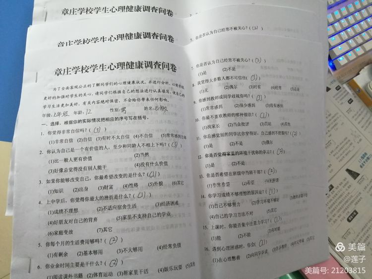 3、全校开展一次心理健康普查。通过普查,快速准确找到需要及时心理辅导的学生对象。