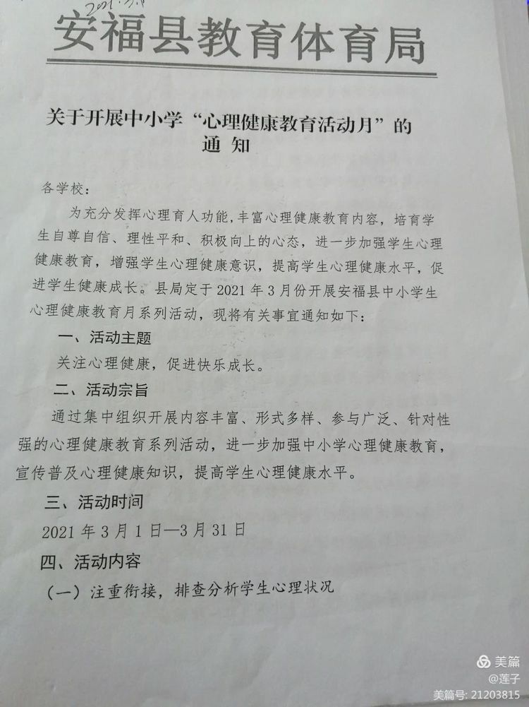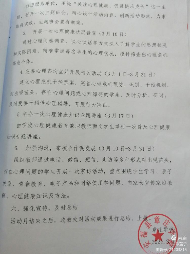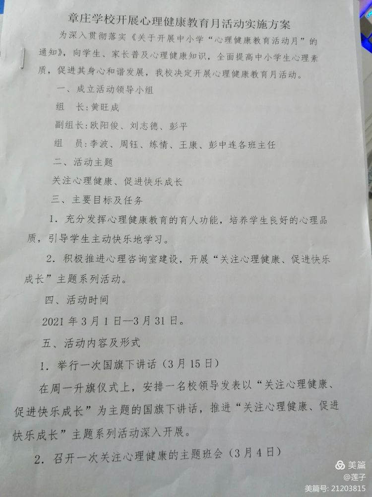 依据安福县教体局通知,章庄学校制订了详细具体可行的活动方案。