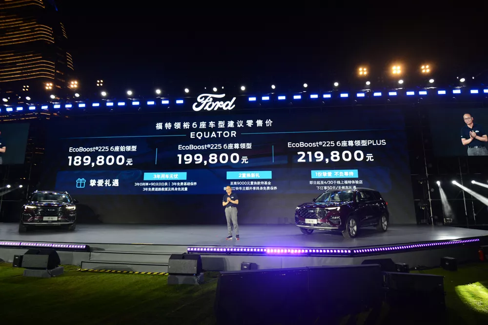 6座福特领裕建议零售价:铂领型18.98万元,尊领型19.98万元,尊领型PLUS 21.98万元,预计4月中下旬正式上市交付。