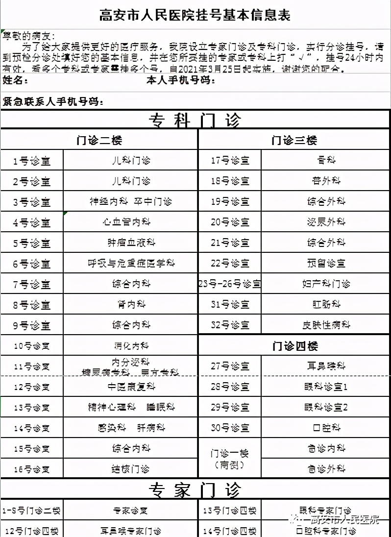 为进一步发挥学科优势,不断提高医疗服务质量,有效引导患者按需就医,尽力满足广大患者的就医需求,高安市人民医院专家门诊、专科门诊已作出最新调整,将于2021年3月25日开始实施。我院专家门诊及专科门诊是为广大患者能够寻觅良医而精心打造的重点科室,由院内各医疗领域具有高级技术职称权威专家和临床经验丰富的精英骨干医生轮流坐诊,将为市民提供更专业、更精准、更权威的诊疗服务,同时也助力“大病不出市”目标的实现,为患者搭建优质、高效、便捷的就医桥梁。专家门诊、专科门诊最新安排将带给市民实实在在的获得感、幸福感、安全感。