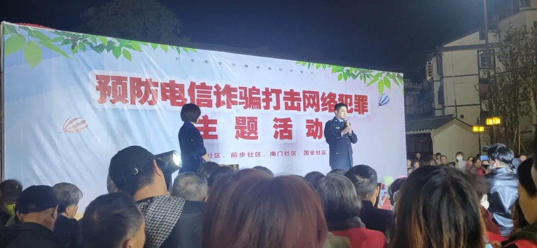 3月22日晚,黎川县公安局联合日峰镇南门社区、东方红社区、前步社区、国安社区开展“预防电信诈骗、打击网络犯罪”主题活动,推进队伍教育整顿“我为群众办实事”实践活动落到实处,受到居民群众的好评和欢迎。