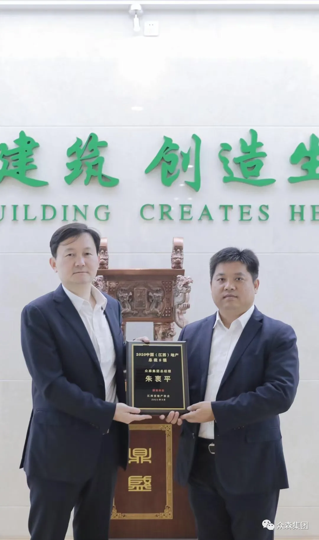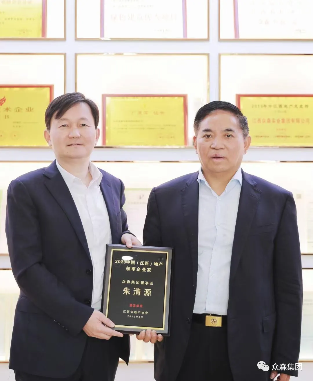 采访后,江西省地产协会秘书长向朱清源会长详细汇报了江西省地产协会2021年工作计划和安排,并代表江西省地产协会向朱清源同志颁发2020中国(江西)地产领军企业家荣誉牌和证书,向朱衷平总经理颁发2020中国(江西)地产总裁8强荣誉牌和证书。