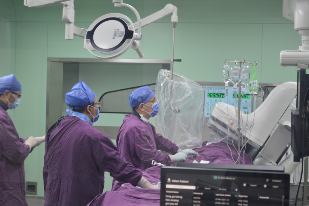 揭牌仪式过后,江西省心血管病医院心内科团队对当日手术病例进行了汇报,随后,外省专家张斌、马剑英教授移步介入室与省医心内科团队一同成功开展了4台高危复杂冠脉介入手术,用实践操作为线上同道展示了腔内影像的重要辅助作用及高超的手术技能。