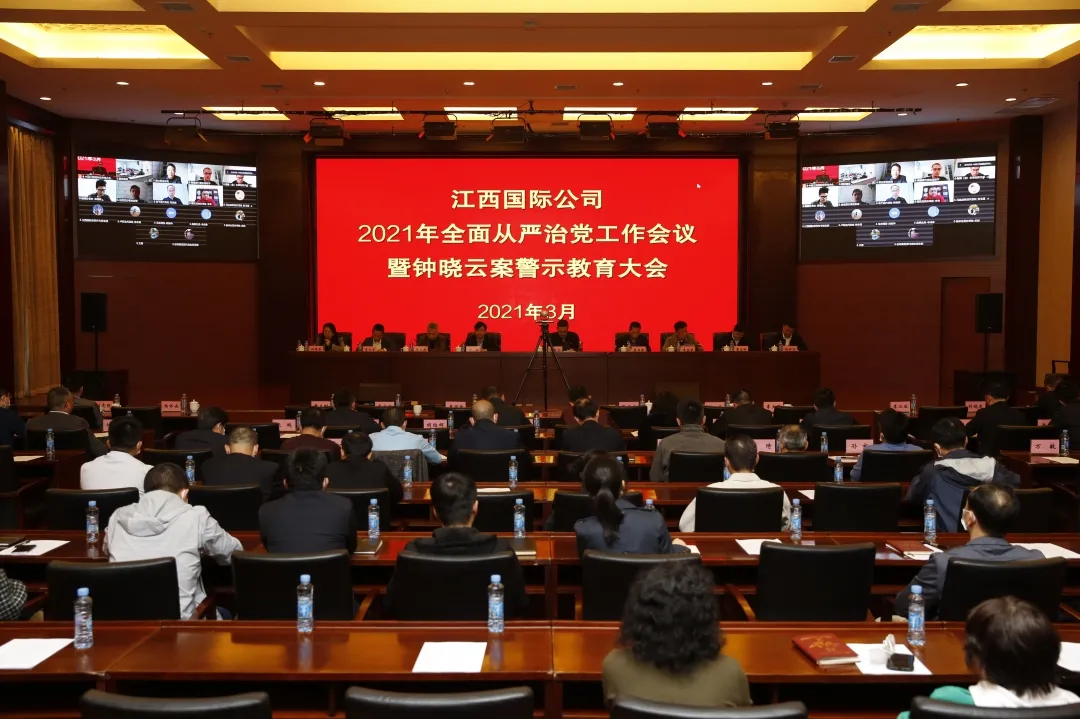 3月31日下午,江西国际公司召开2021年全面从严治党工作会议暨钟晓云案警示教育大会。党委书记、董事长张建安作全面从严治党工作报告,党委委员、纪委书记李文涛讲话。