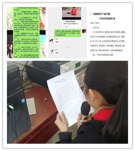 学校利用家长微信群,校园广播等方式向学生、家长推送心理安全提醒,宣传心理健康知识。