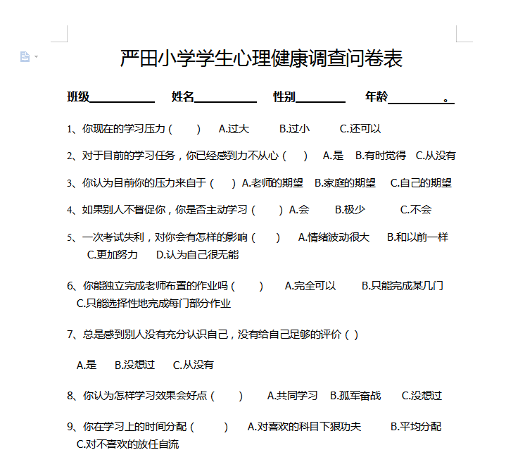 各班进行心理健康问卷调查