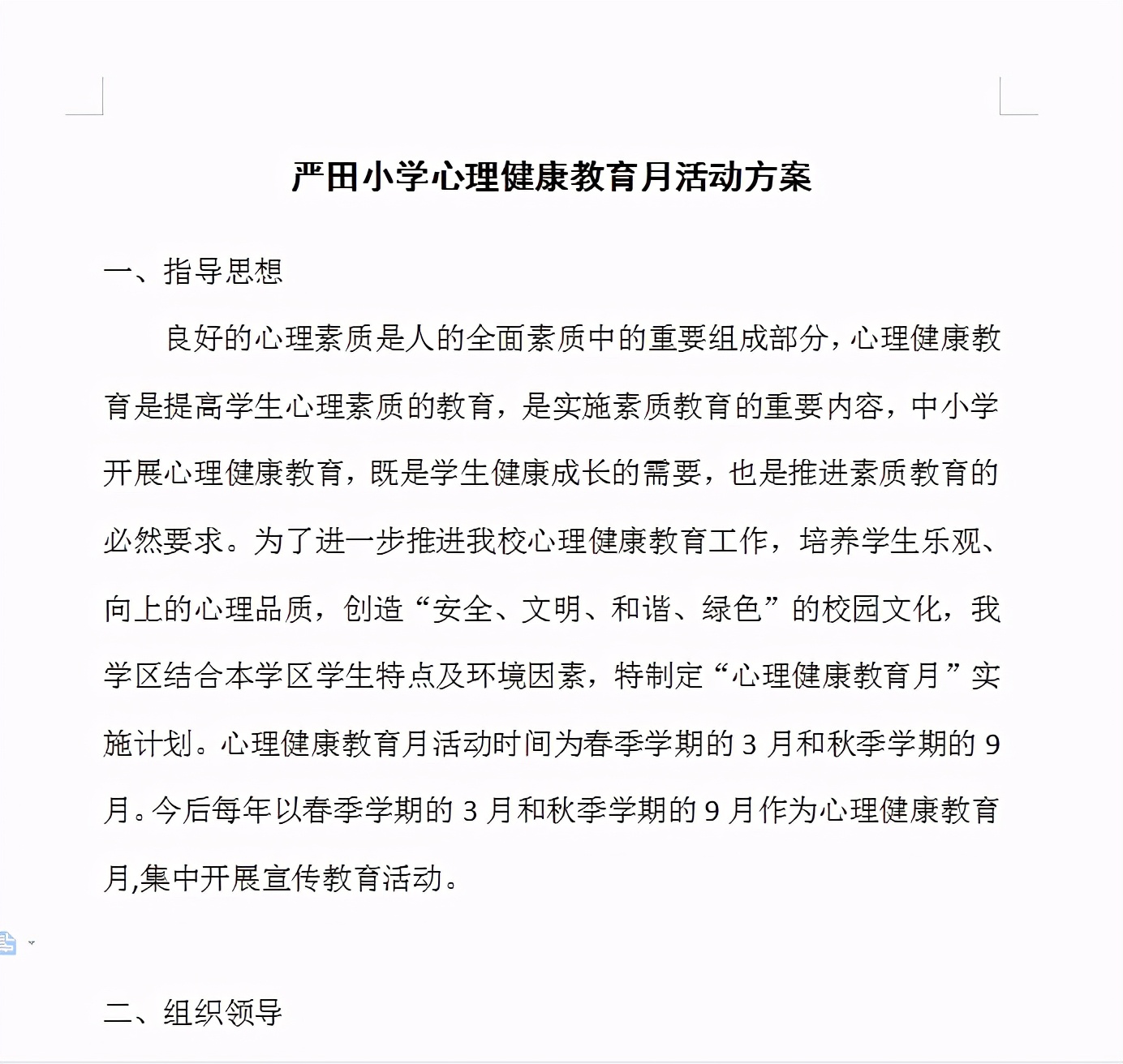 学校召开安全工作会议,重点强调心理健康教育,政教处制定活动方案,各班级开展多形式的心理健康教育活动。