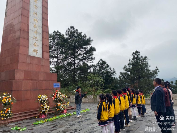 山顶上,红五军寅陂桥战斗纪念碑庄严肃穆。在纪念碑下,党员教师毛慧声情并茂地为大家讲述了寅陂桥战斗遗址的由来和刘之志、贺国中烈士的故事,在毛慧老师的讲解下,少先队员们仿佛回到了那个战火纷飞的年代,深刻体会到了如今美好生活的来之不易,和那个年代每一个人刻在骨血当中崇高信仰的强大力量。