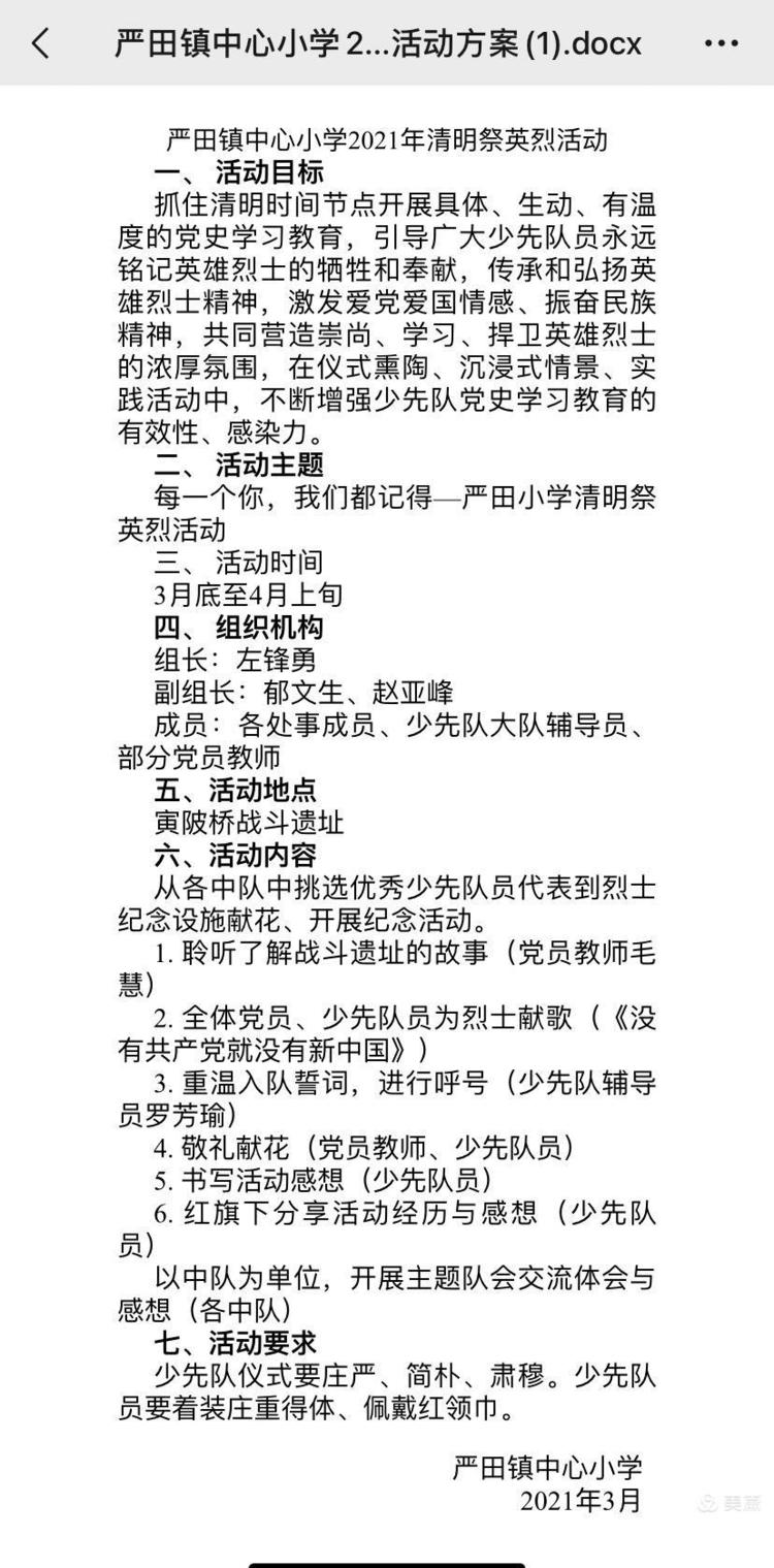 习近平总书记说:“对为国牺牲、为民牺牲的英雄烈士,我们要永远怀念他们。”为了践行习近平总书记的嘱托,深入推进民族精神,了解党的历史、知晓党的故事,激发学生爱党、爱国的情感。营造“从小学党史,永远跟党走”的浓厚氛围。严田镇中心小学的党员教师们带领少先队员们前往横龙镇寅陂桥战斗遗址开展祭扫活动。