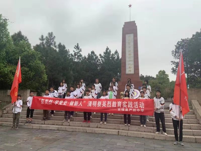 为庆祝建党100周年,进一步加强青少年党史学习教育,弘扬中华民族精神和传统文化,缅怀先烈继承革命传统,2021年4月2日下午,严田中学组织优秀学生赴“红五军寅坡桥战斗遗址”开展了“祭英烈、学党史、做新人”的主题教育清明祭扫活动。