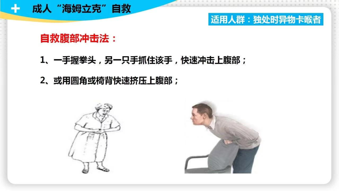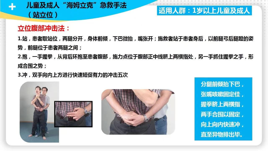 如果意外不幸发生了,只有一个急救方法——海姆立克急救法。