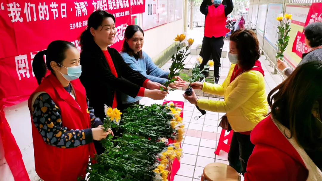 义诊活动后,党员志愿者们还开展了垃圾分类、文明祭扫宣传、社区环境卫生清理等活动。吴丽萍副院长向社区居民发放祭扫鲜花,倡导居民采取文明低碳的祭扫方式缅怀先人,共同度过一个“既重防疫、又重防火、文明祭祀”的绿色清明节。本次活动接受义诊及咨询48人,发放宣传资料60余份,清理社区垃圾2处。