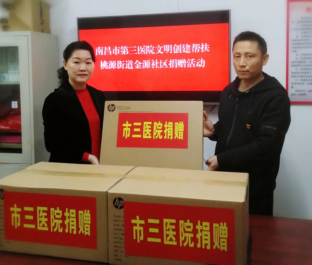 在捐赠仪式上,副院长吴丽萍代表医院向社区捐赠了2台电脑,缓解了社区电脑设备短缺的现状,为改善社区的办公条件和社区文明创建贡献了爱心力量。