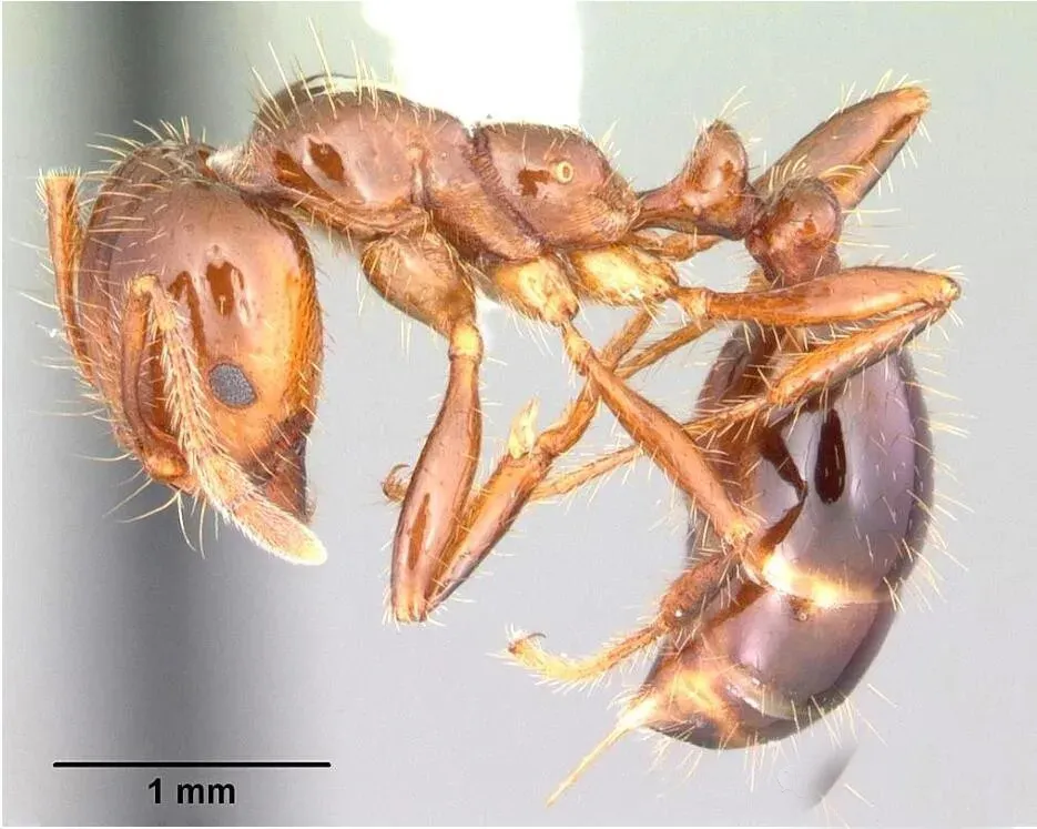 观察蚁群颜色:身体呈棕红色或橘红色,腹部颜色较深