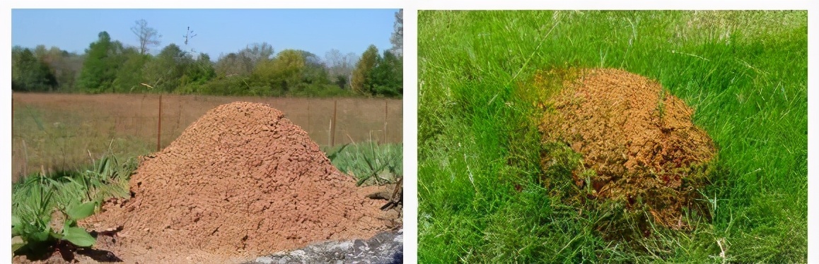 观察蚁巢:成熟蚁巢外部隆起呈土堆状,内部呈蜂窝状。