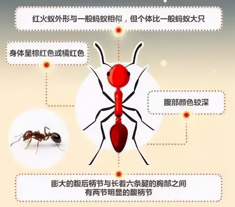 红火蚁的拉丁名意指“无敌的”蚂蚁,难以防治而得名。其通用名,火蚁,则指被其蜇伤后会出现火灼感。那么,我们如何辨别红火蚁呢?