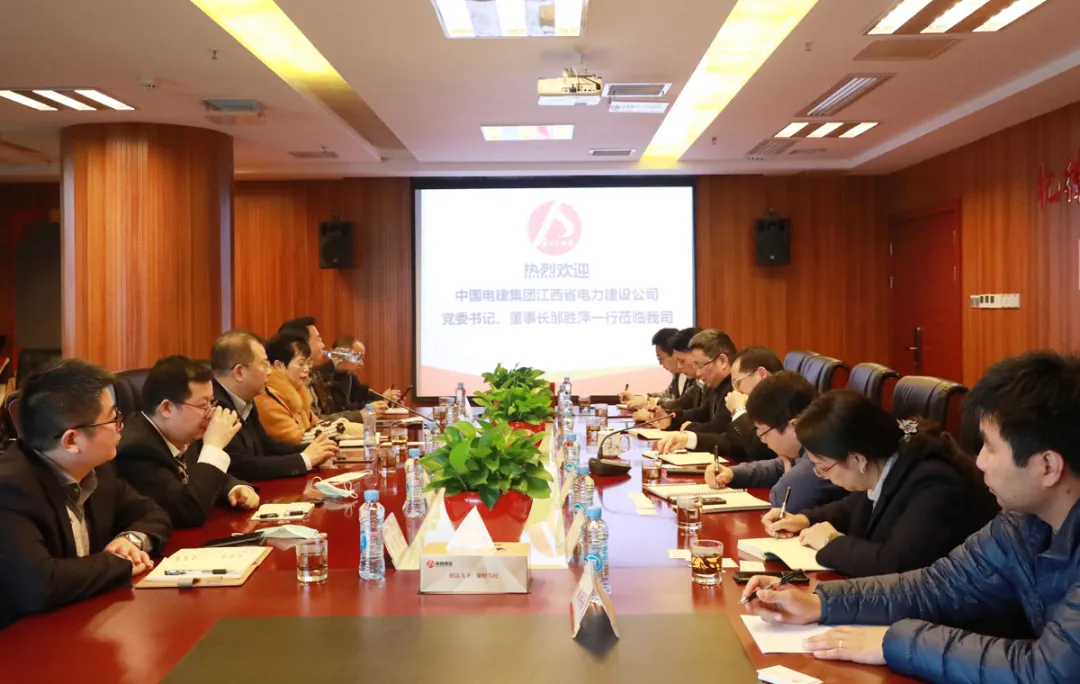 4月7日下午,中国电建集团江西省电力建设公司党委书记、董事长邹胜萍一行来到投资集团进行商务洽谈。市政公用集团总经理助理、市政投资集团党总支书记、董事长邹建伟陪同。