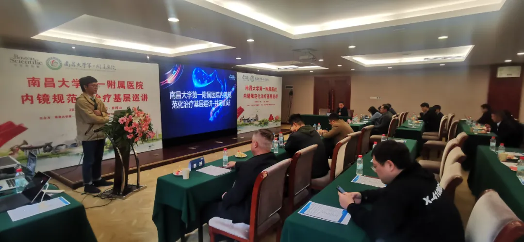 在主题党日活动之余,南昌大学第一附属医院消化科巡讲团在井冈山进行了“内镜规范化治疗基层巡讲”,本次活动旨在为我省广大基层临床医师创建一个交流平台,推动江西地区消化内镜专业技术人员及消化疾病诊疗规范性的同质化发展。
