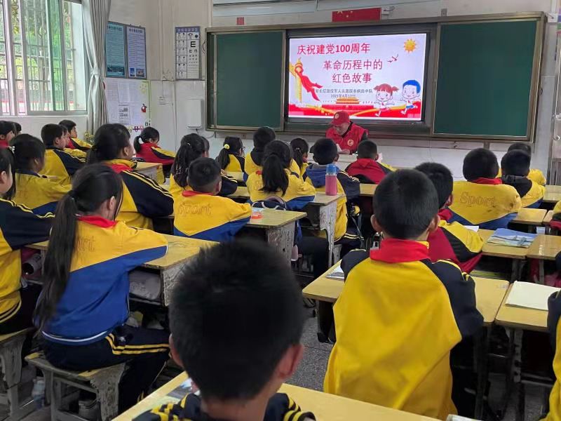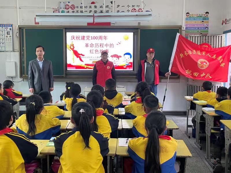 2021年是中国共产党成立100周年,是“十四五”开局之年。为庆祝党的百年华诞,牢记党的宗旨,传承红色基因,讲好退役军人故事,凝聚奋进力量,根据全国、全省“老兵永远跟党走”庆祝建党100周年系列活动安排,4月12日下午,安福县退役军人志愿服务中队诚邀退役军人谢光明老人来到枫田小学为学生讲红色故事。