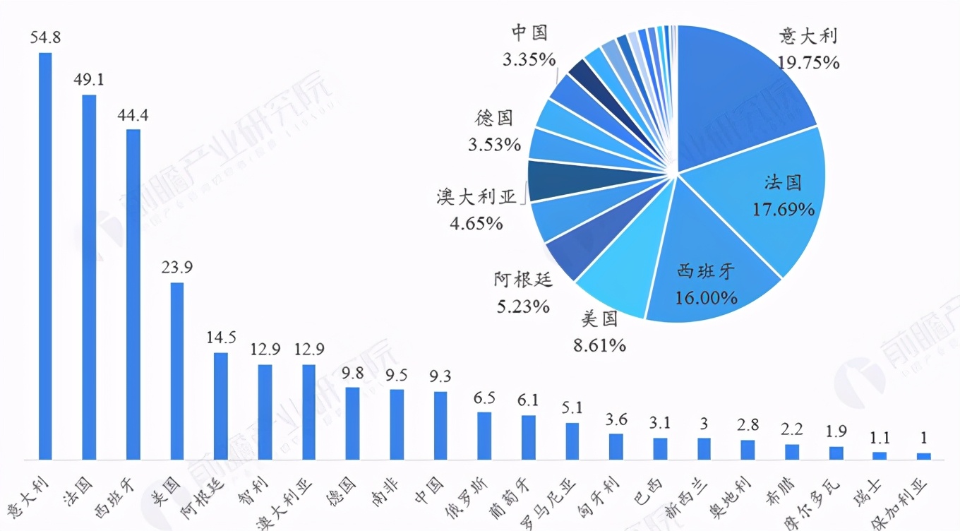 名列前茅的葡萄酒产量一定程度上反映了作为葡萄酒领军的实力,对于进口葡萄酒的发烧友而言,首选以上三个国家的葡萄酒,根据自己的饮酒风格,定位一款适合自己的葡萄酒。