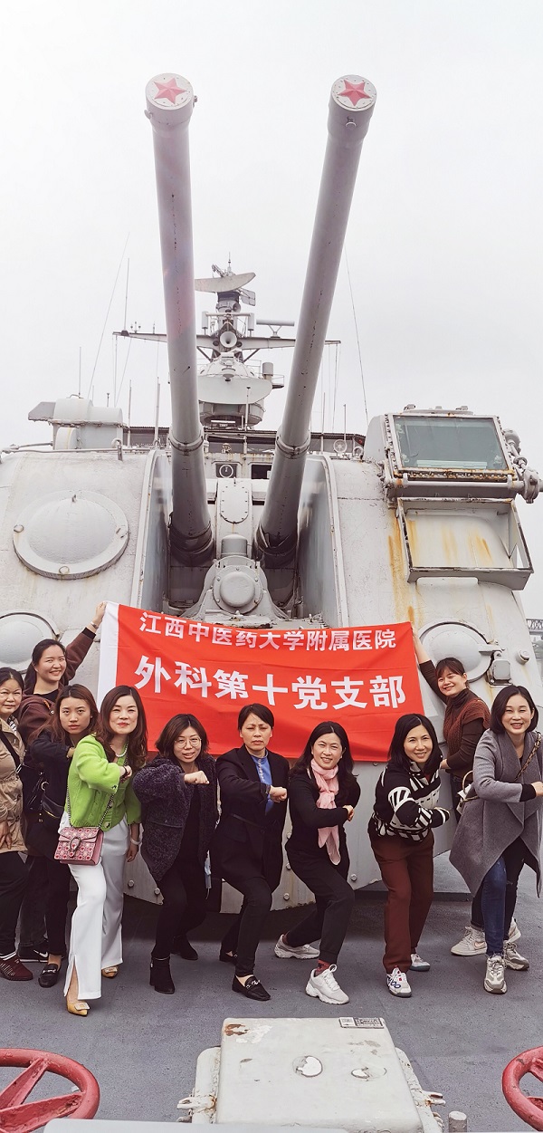 2021年4月15日下午,外科总支第十支部学党史,到南昌舰感受红色文化,传承红色基因。戈阳华为大家介绍了南昌舰的前世今生,讲解内容生动,获得了第十支部的同志们的热烈欢迎。在参观南昌舰并了解南昌舰的同时,第十支部的同志们都深刻的学习和了解了中国共产党红色历史的起承转合,通过南昌舰的所见所闻,厚植家国情怀。