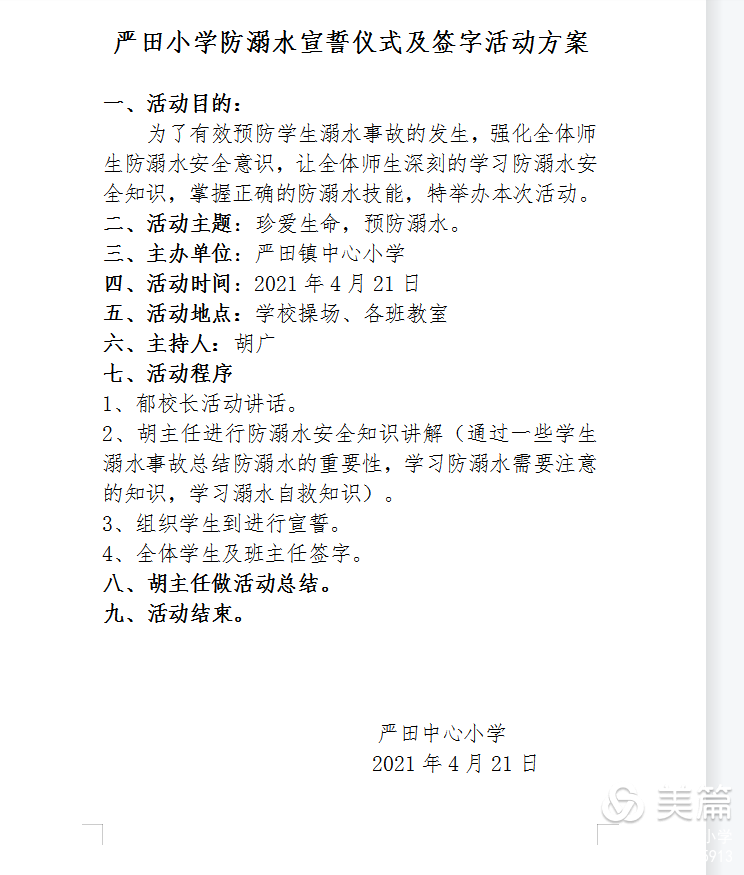 夏季是学生溺水事故的高发期,为确保学生的生命安全,提高学生的安全防范意识,严防因游泳戏水带来的意外事故的发生,我校开展了防溺水签名宣誓活动。