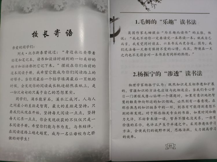 培养学生良好的读书习惯。让一本本好书成为导航灯,指引我们向 "知识渊博、性情通达、思维创新"的目标不懈努力。