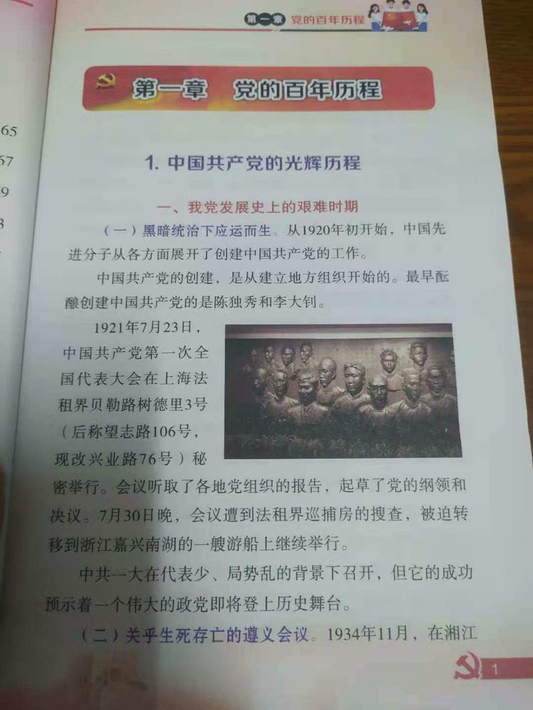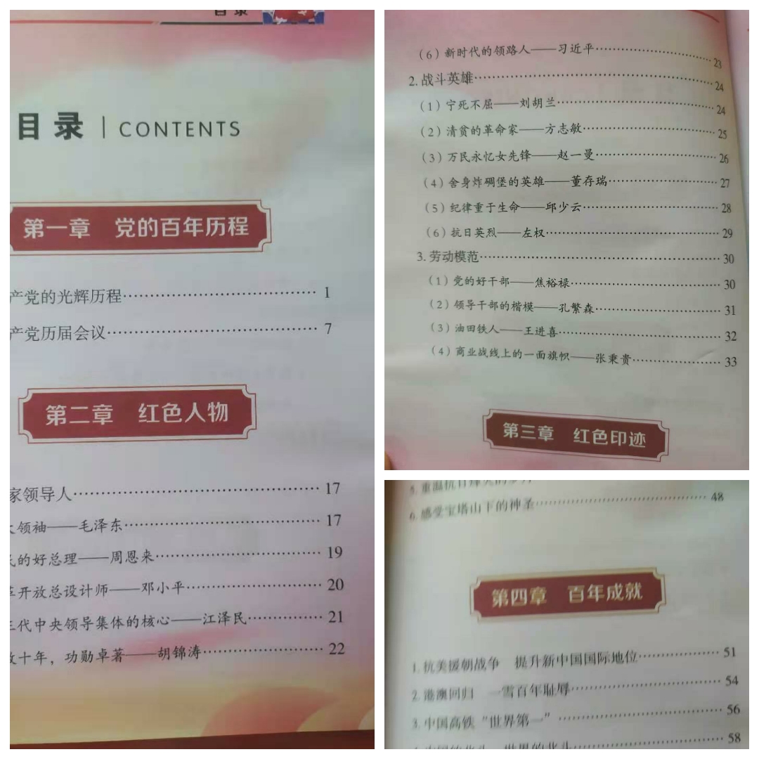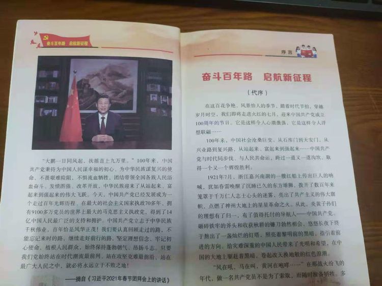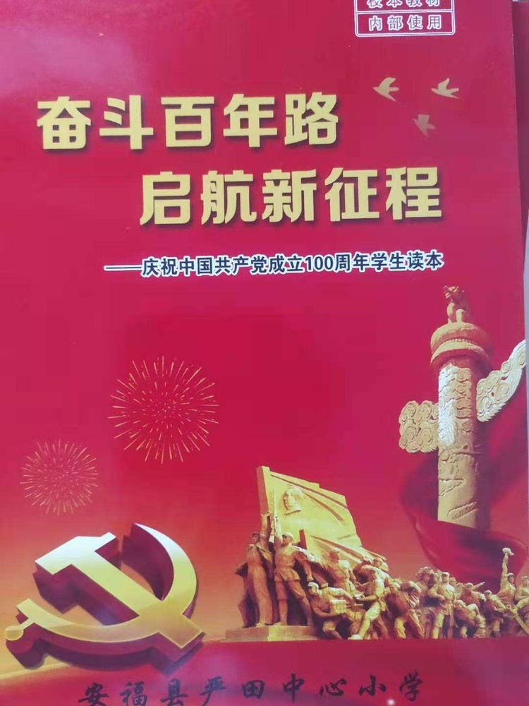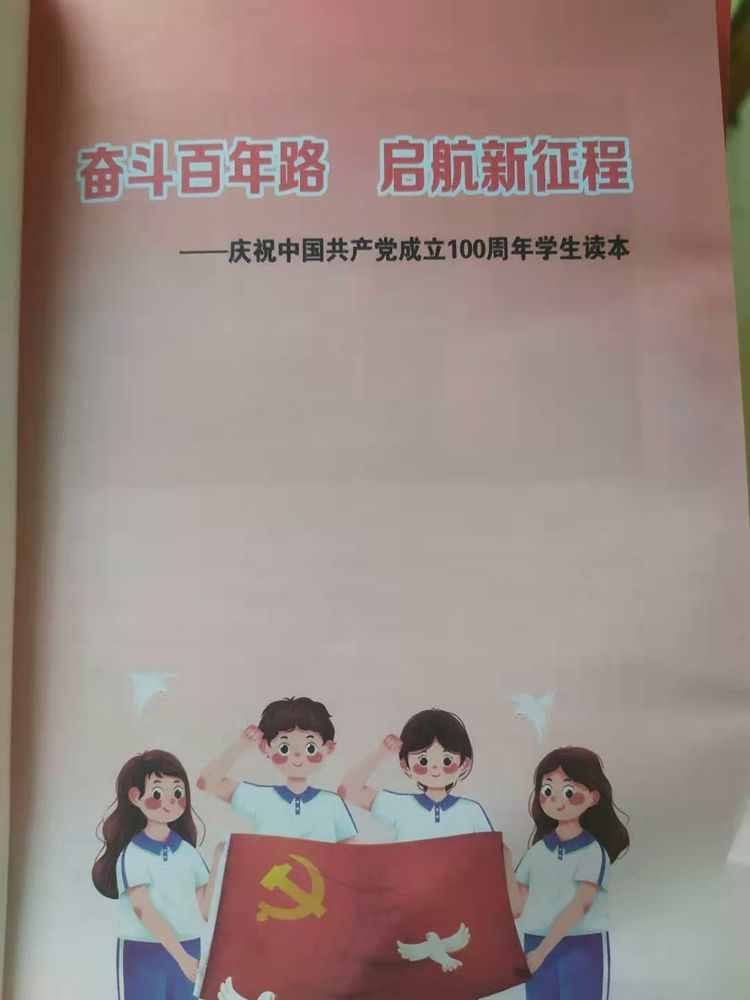 “奋斗百年路,启航新征程”,今年是中国共产党成立100周年。为了让学生更深入的了解中国共产党百年历程,学校给每位学生发放我校的校本教材。教材共分为党的百年历程、红色人物、红色印记、百年成就四个章节。