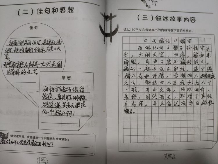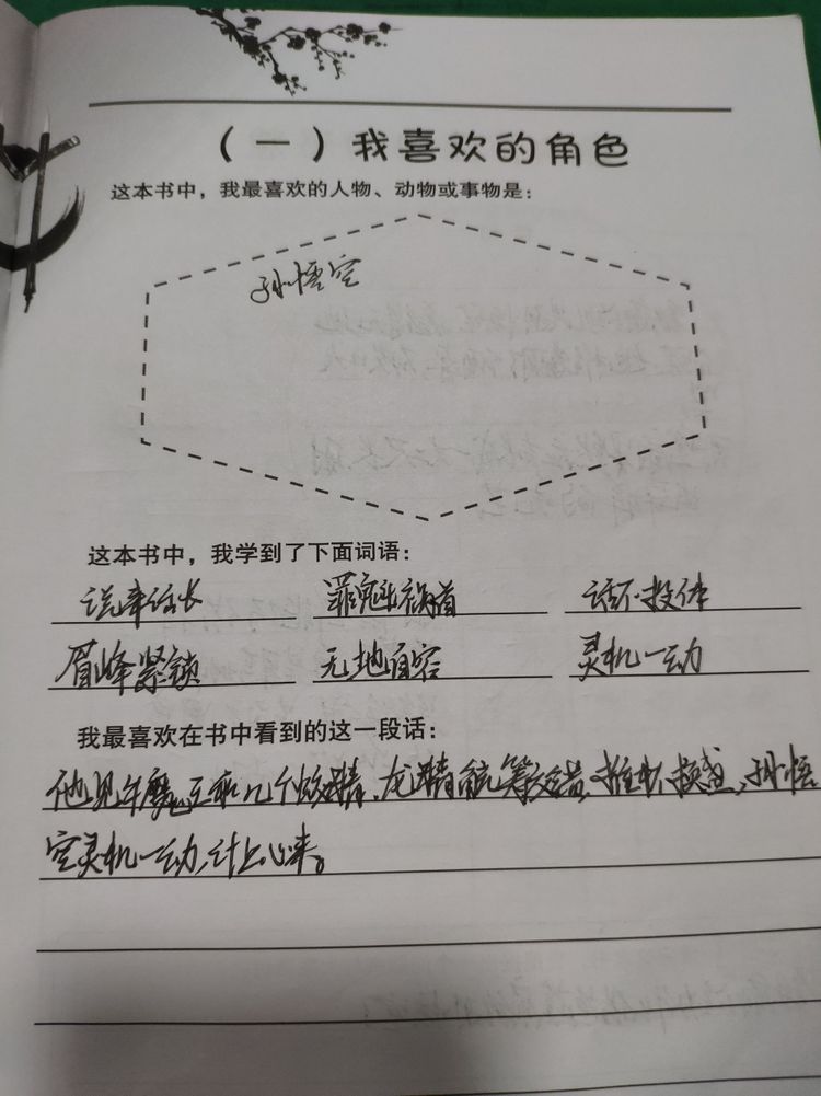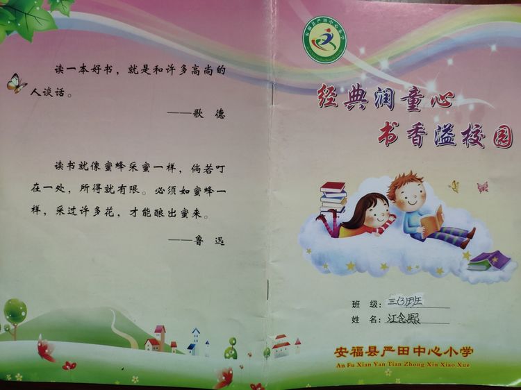 为培养学生养成良好的阅读习惯,让学生的课外阅读有效果,我校给三至六年级的同学每人发放了一本读书笔记本。让学生坚持每月至少看完一本书,并用笔记本记录下来。