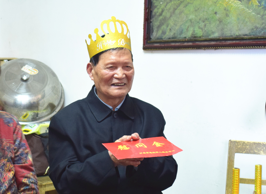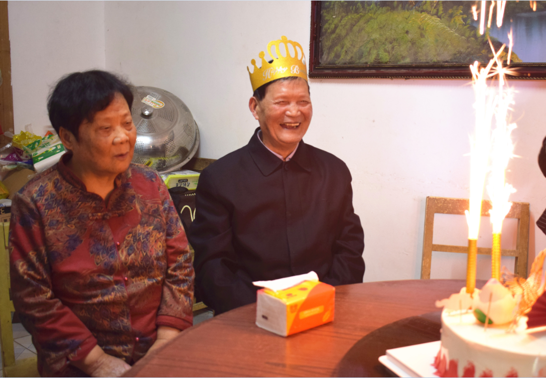 今天是勒老的生日,南昌普瑞眼科医院的工作人员特意为老人准备了生日蛋糕,勒老的儿子今天也从外地特地赶了回来,在真挚的祝福与歌声中,慰问组人员与家人们一起为勒老庆祝了他的81岁寿辰。